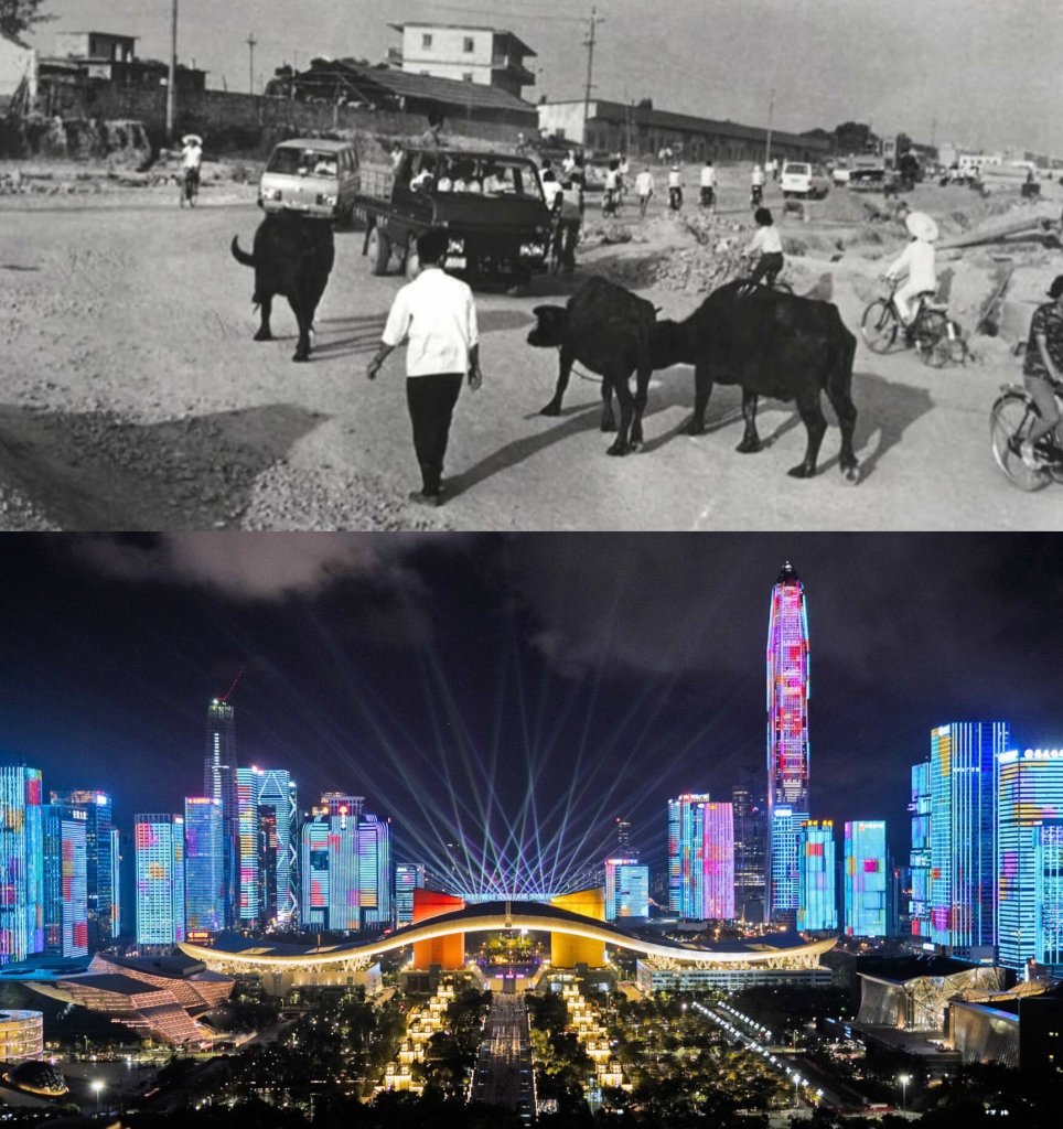 Two photos taken in Shenzhen, one from 1980 and the other from 2020.